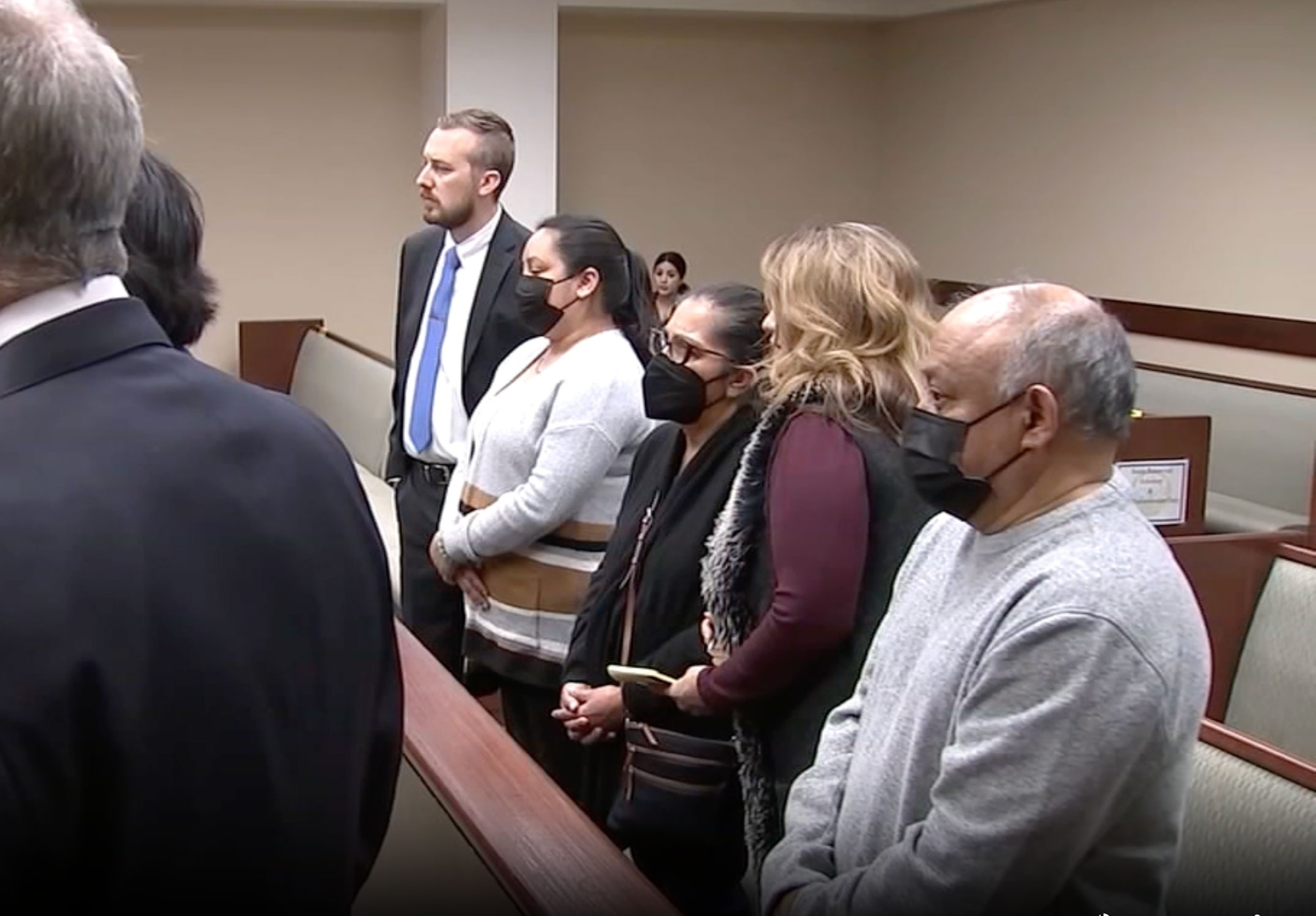 The Olguins, seen in masks during a previous court appearance, were sentenced on Oct. 18, 2024.