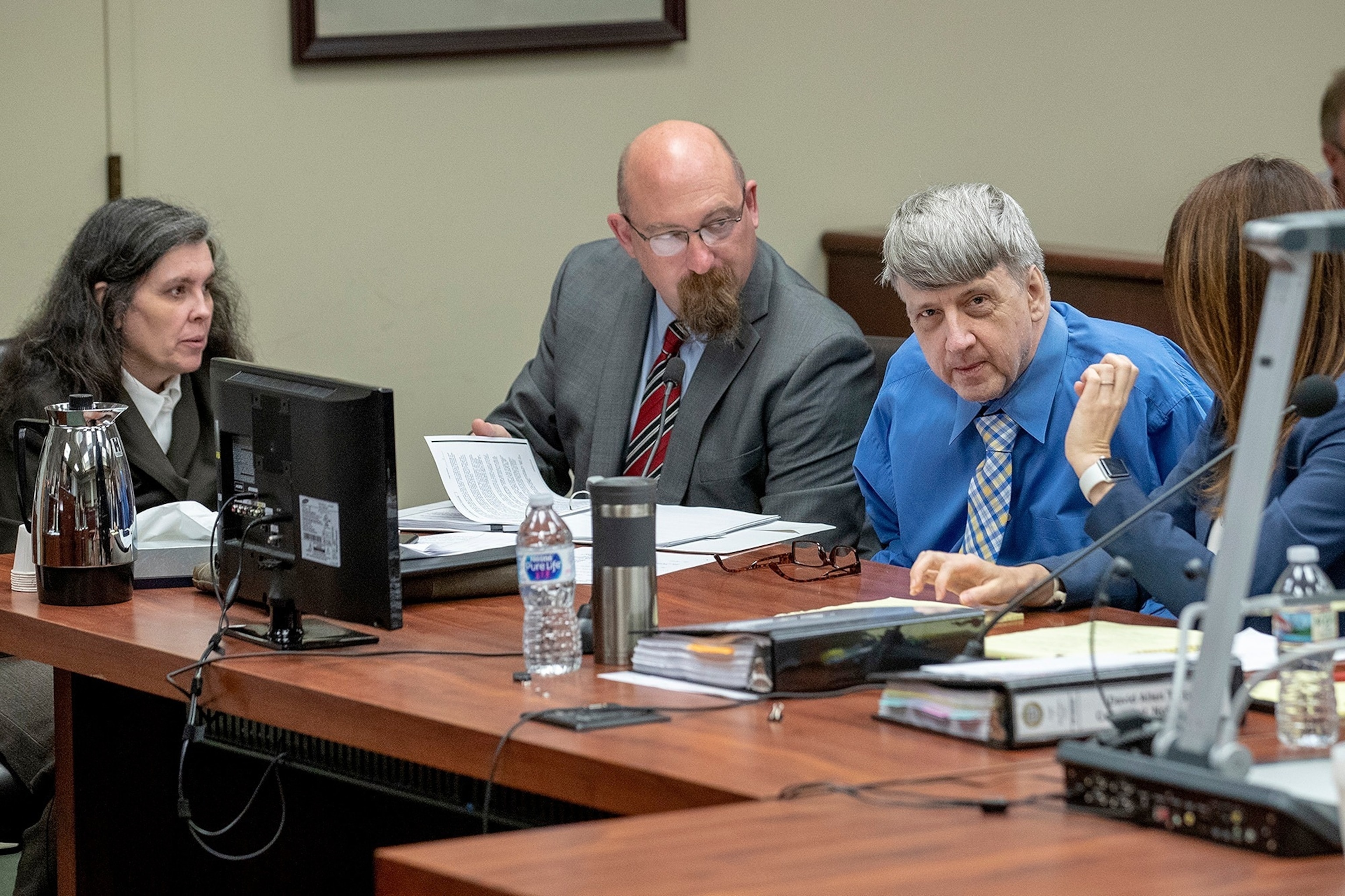 Louise Turpin, attorney John Moore, and David Turpin at a preliminary hearing in Riverside, Calif., June 20, 2018.